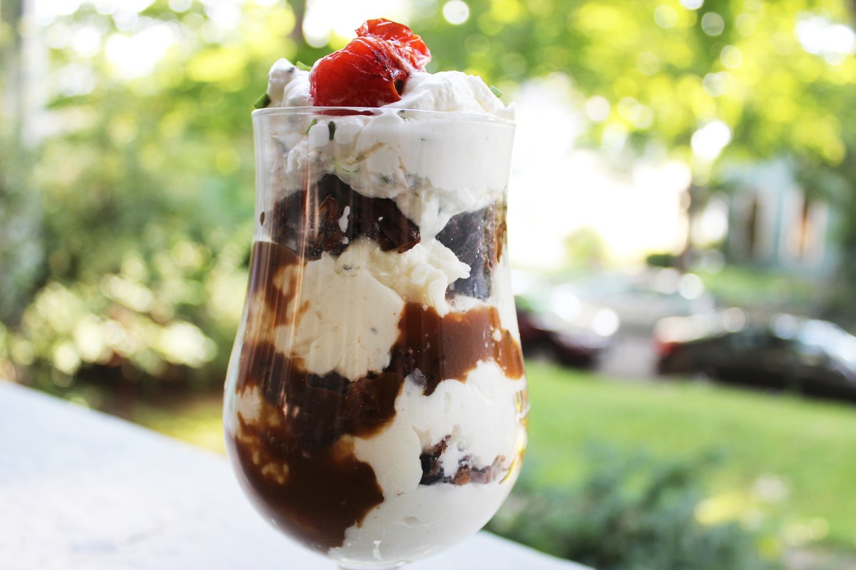 For this particular long weekend version, we upgraded the Roast Beef Sundae by swapping in flavorful, tender wine-braised short ribs, making the mashed potatoes from scratch, and topping the concoction off with beef gravy sauce, a savory herb whipped cream and roasted cherry tomatoes. There are a lot of components, so this is definitely not a weeknight kinda meal, but the end result delivers in the way fair food never, sadly, does.